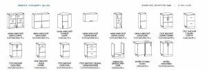 Глубина верхних шкафов указана без учета фасада, высота столов указана без учета столешницы