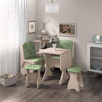 Можно самим собрать уголок из диванчиков нужного Вам размера - двух больших, двух малых или разноразмерных, как в классическом варианте, подобрать любой понравившийся кухонный стол, табуреты или стулья.