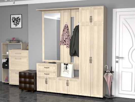 Удобный и многофункциональный модуль для прихожей, сочетающий в себе тумбу с 2-мя выдвижными ящиками и большое зеркало.