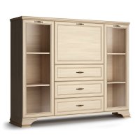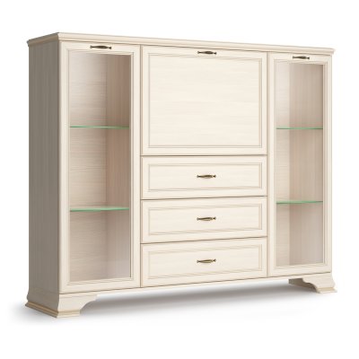 Если вам нужно купить недорогой низкий шкаф в гостиную в классическом стиле обратите внимание на данную модель. В его наполнении вам доступно 2 отделения со стеклянными дверками для хранения посуды, книг и различных сувениров. На ваш выбор вы можете докупить четыре стеклополки и модель заиграет новыми красками.