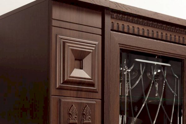 Классическая серия «Лючия» включает 12 модулей для гостиной и кабинета.  Запоминающийся облик коллекции «Лючия» обеспечивают оригинальные дизайнерские приёмы: торцевые и внутренние модули-колонны, сложная радиусная гравировка и фигурная фрезеровка в сочетании с объемными декоративными элементами. Мебель оснащена надежной немецкой фурнитурой «Hettich» и роскошными итальянскими ручками подсостаренное золото, что является несомненным плюсом ко всем ее достоинствам.