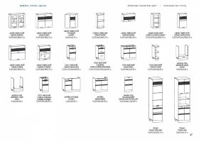 Глубина верхних шкафов указана без учета фасада, высота столов указана без учета столешницы