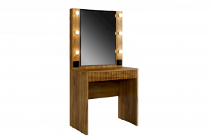 Трюмо Адам — это идеальное сочетание стиля и практичности. С широким фацетированным зеркалом, в котором встроена подсветка из 6 лампочек, оно создает атмосферу профессиональных студий визажистов прямо у вас дома. Комфорт и функциональность обеспечиваются дополнительными элементами, такими как выключатель, розетка для фена и выдвижной ящик для хранения украшений и косметики. Элегантные закругленные углы завершают дизайн, делая его идеальным дополнением к вашей спальне.