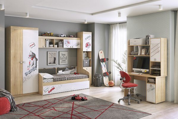 Удобный и функциональный шкаф позволит разместить много полезных вещей, как в открытых нишах, так и в закрытых. Эффектный принтерный рисунок на фасадах выдержан в общем стилистическом решении. Рисунок устойчив к истиранию и ультрафиолету.