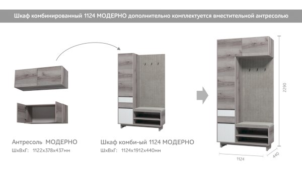 Комбинированный шкаф MODERNO 1124 (Марибель) - за 25 280 руб. в Ивантеевке. Купите на сайте ivanteevka.onlinemarketmebeli.ru или по телефону 8(800)505-30-63 уже сегодня! Уточнить наличие, комплектацию, актуальную цену можно бесплатно у менеджера ежедневно. Закажите Комбинированный шкаф MODERNO 1124 (Марибель) до конца акции! Доступна покупка в кредит, рассрочку. Доставим со склада или на заказ.