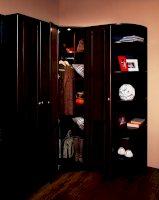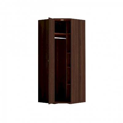 Используйте углы в комнате рационально! Угловой шкаф оснащен стационарной штангой длиной 81 см, полочками для белья и автоматической подсветкой, которая включается, если шкаф открыт. Фасад углового шкафа изготавливается только в исполнении «левый» (определяется по расположению петель). По своим габаритам угловой шкаф подходит для компоновок глубиной 590 мм.