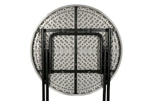 Диаметр стола 81 сантиметр обеспечивает комфортное размещение 3-4 человек, и для масштабного события может потребоваться несколько изделий. Однако благодаря складной конструкции модель займет минимум места при перевозке, благодаря чему столы можно перевезти небольшой партией и на легковом транспорте. Для каркаса используется стальная труба особой прочности, а столешница выполнена из 100% не переработанного полиэтилена HDPE (полиэтилен высокой плотности). Считается одним из более безопасных видов пластика. HDPE пластик выдерживает высокие нагрузки, не трескается при ударной нагрузке, эластичен в диапазоне температур от –70 до +100 °С.