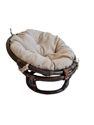 Стильное и удобное кресло Папасан из ротанга состоит из основания и чаши-кокона, которые скрепляются кожаными ремнями, подушка на завязках.