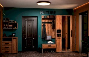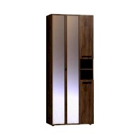 Nature 87 Шкаф для одежды и белья создаст все необходимые условия для хранения в прихожей верхней одежды и аксессуаров. В этом шкафу есть все необходимое для размещения верхней одежды: выдвижная штанга, верхняя полка, ряд регулируемых полок. Большая секция оснащена выдвижной штангой для развешивания пальто и курток на плечиках. Выдвижная штанга выдерживает вес до 10 кг. Один из зеркальных фасадов Контур открывается за ручку-петлю из черной экокожи, второй фасад - за раму. По желанию к модулю можно докупить Nature 94 Дополнительный модуль для Nature 87, который крепится под полку открытой ниши.