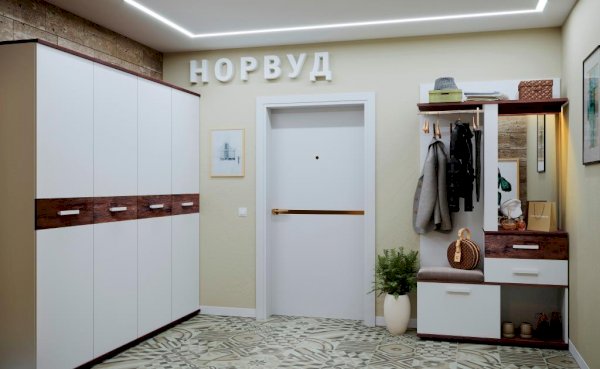 Распашной шкаф для одежды и белья комплектуется выдвижной штангой для одежды. При желании можно докупить и установить модуль Полки Норвуд 72 (в комплекте 3 полки) в заранее просверленные варианты присадки. Верхняя и нижняя детали шкафа толщиной 22 мм и ддекоративная вставка по центру в декоре Орех Шоколадный - яркие акценты простого белого модуля. Ударопрочная кромка на фасаде толщиной 2 мм продлит срок эксплуатации мебели. Фасад шкафа перевешивается на ваше усмотрение на правую или на левую сторону.
