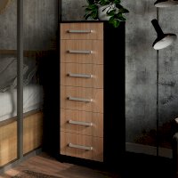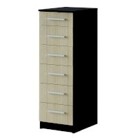 Невероятно практичная и функциональная модель комода Фиеста отлично впишется в любую комнату от коридора до спальни. Компактный размер изделия вместит в себя большое количество вещей за счет шести выдвижных ящиков. Верхнее отделение меньше остальных и прекрасно подходит для хранения мелочей. Комод Фиеста выполнен из ЛДСП высокого качества в контрастных цветах венеге и лоредо. Украшают модель удобные широкие ручки.