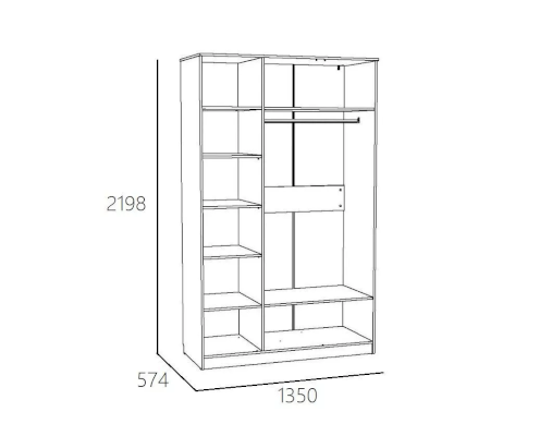 Трехстворчатый шкаф Оливия НМ 040.33 X поможет организовать систематизированное хранение вещей. Вместительная секция со штангой подходит для размещения длинных шуб, пальто и платьев. На широкую верхнюю полку в центральной части модуля можно сложить те вещи, которые нужны не часто. Отделение с пятью полками обеспечит место для хранения трикотажной одежды. Центральная дверца шкафа оборудована зеркалом, в котором можно увидеть себя в полный рост.