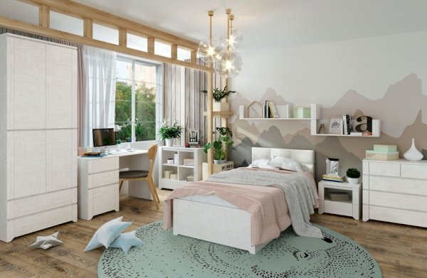Двухдверный компактный шкаф Твист для одежды, оснащенный штангой и рядом полок. Нейтральный молочный цвет фасада оживляется геометричной фрезеровкой  на фасадах.