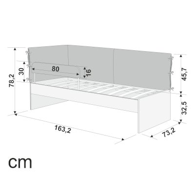 Размер кровати (ДхШхВ): 1630х730х780 мм