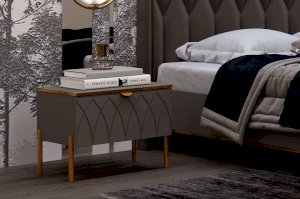 Тумбочки с спальню Капри 2 отличаются ярким дизайном и гармонично сочетаются с кроватями данной линейки. Модное цветовое решение в серой гамме «мокко» и «силк анис» гармонично впишется в современный интерьер.