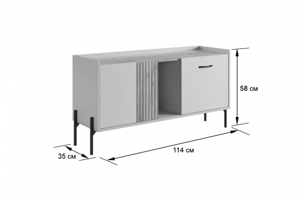 Стильная металлическая ручка придает тумбе современный и модный вид. Открытая ниша обеспечивает легкий доступ к вещам, которые вы используете часто, или может служить пространством для размещения медиа-устройств.