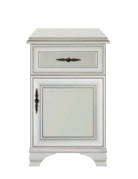 Тумба делится на два отделения, закрывающееся распашной дверцей, и выдвижной ящик