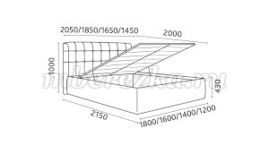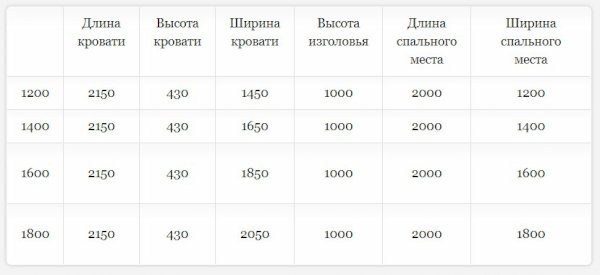 Кровать доступна в 4-х размерах:  1200, 1400, 1600 и 1800 мм.