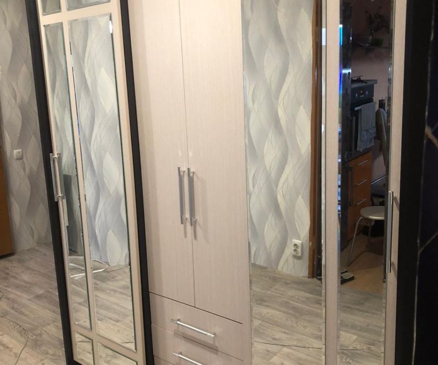 У раздвижных зеркальных дверей видна щель, если смотреть на шкаф с боку! Собрали согласно инструкции.