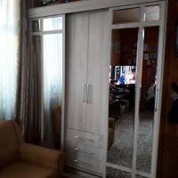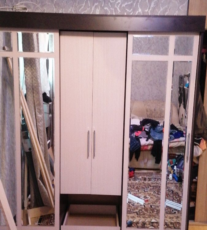 очень удобный многофункциональный шкаф купе с доп полками и выдвижными ящиками который ращделяется на три части что позволяет хранить вещи более удобнее