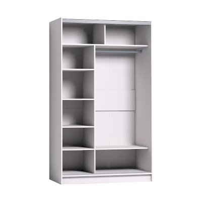 Продуманное внутреннее наполнение шкафа состоит из стеллажа для белья и стационарной штанги длиной 725 мм. На ней поместится как минимум 10 плечиков с верхней одеждой. В изготовлении шкафов-купе STRIKE использована прочная стальная система треков «Найди» цвета Металлик. Двери шкафов дополнены ручками из массива и шлегелем, который смягчает удары дверей при закрывании, а также защищают вещи от попадания пыли. Благодаря скрытым полкодержателям полки жестко крепятся на необходимой высоте.