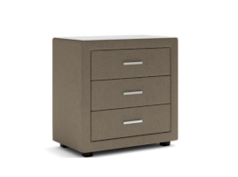 Элегантный комод отличается стильным дизайном и повышенным удобством. Три выдвижных ящика оснащены надёжными направляющими, обеспечивающими лёгкое открытие. Фасад ящиков и стенки комода покрыты обивочным материалом. Для удобства использования и продления срока эксплуатации, рекомендуется использовать стеклянную накладку. Накладка используется в качестве столешницы для комода и защищает его от повреждений и загрязнений.