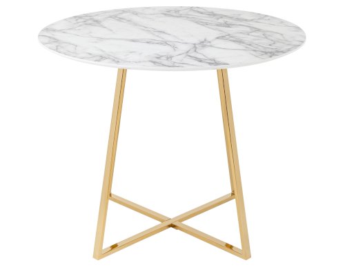 Лаконичный обеденный стол для кухни. Круглая столешница с рисунком белого мрамора выполнена из МДФ - прочного, экологически безопасного материала, который устойчив к перепадам температур и повышенной влажности. Поверхность столешницы декорирована рисунком белого мрамора, который идеально сочетается с металлическими ножками. Защитные подпятники на ножках предотвращают порчу напольного покрытия.
