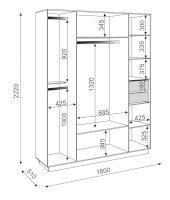 • В левой секции две штанги под короткие вещи и одна жесткая полка.