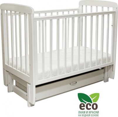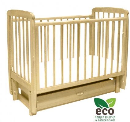 Кроватка "Соня 05" имеет механизм качания продольный маятник. Механизм качания фиксируется. Возможен вариант с ящиком.