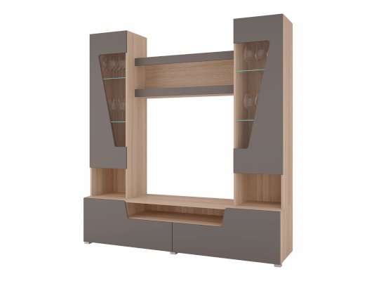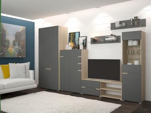 Отсутствие ручек является особенностью серии "Анталия", что придает современный и лаконичный внешний вид. В состав гостиной "Анталия" входит вместительный шкаф, а добавив комод можно получить еще больше места для хранения.