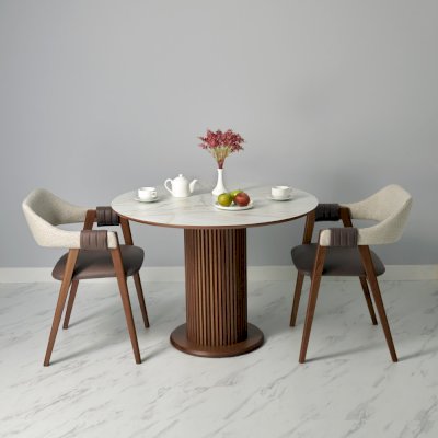 Подстолье стола имеет балясину из натурального бука. Стол отличается своей массивностью, он прекрасно подойдет для классического и интерьера в стиле модерн, для кухни и для просторной гостиной.