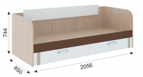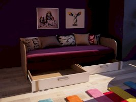 • Кровать имеет 2 выдвижных ящика.