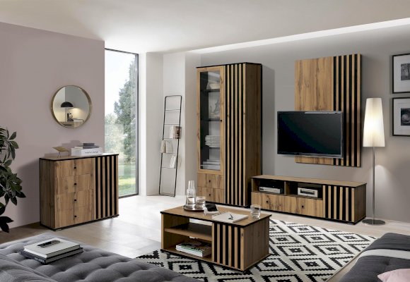 Распашная дверца с фасадной рейкой является основным акцентом и сразу обращает на себя внимание. Это настоящее украшение модуля!