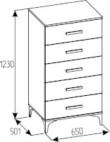 Комод высокий КАРА 3 с 5 ящиками очень вместительный. Здесь найдется место для хранения аксессуаров, одежды, белья, книг, документов, косметики и других личных вещей. Ящики оснащены шариковыми направляющими полного выдвижения. Это дает возможность использовать всю полезную площадь ящика. Фигурные металлические опоры поднимают комод над полом и придают ему изысканный силуэт.